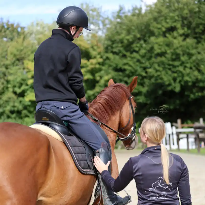 - Bewegungsanalyse beim Reiten mit Sitzschulung und anschließender Einzelbehandlung von Pferd und Reiter